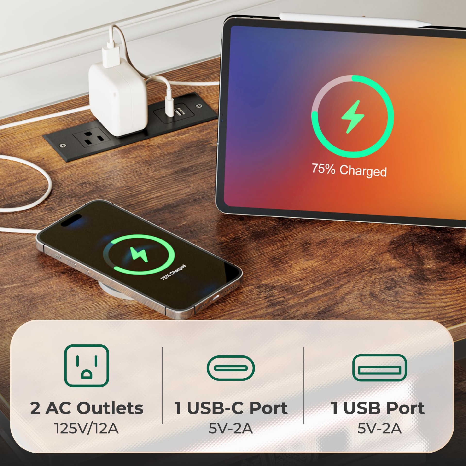 • Nightstand with Charging Station, Side Table with Fabric Drawers, End Table with Open Shelf[pics:i]