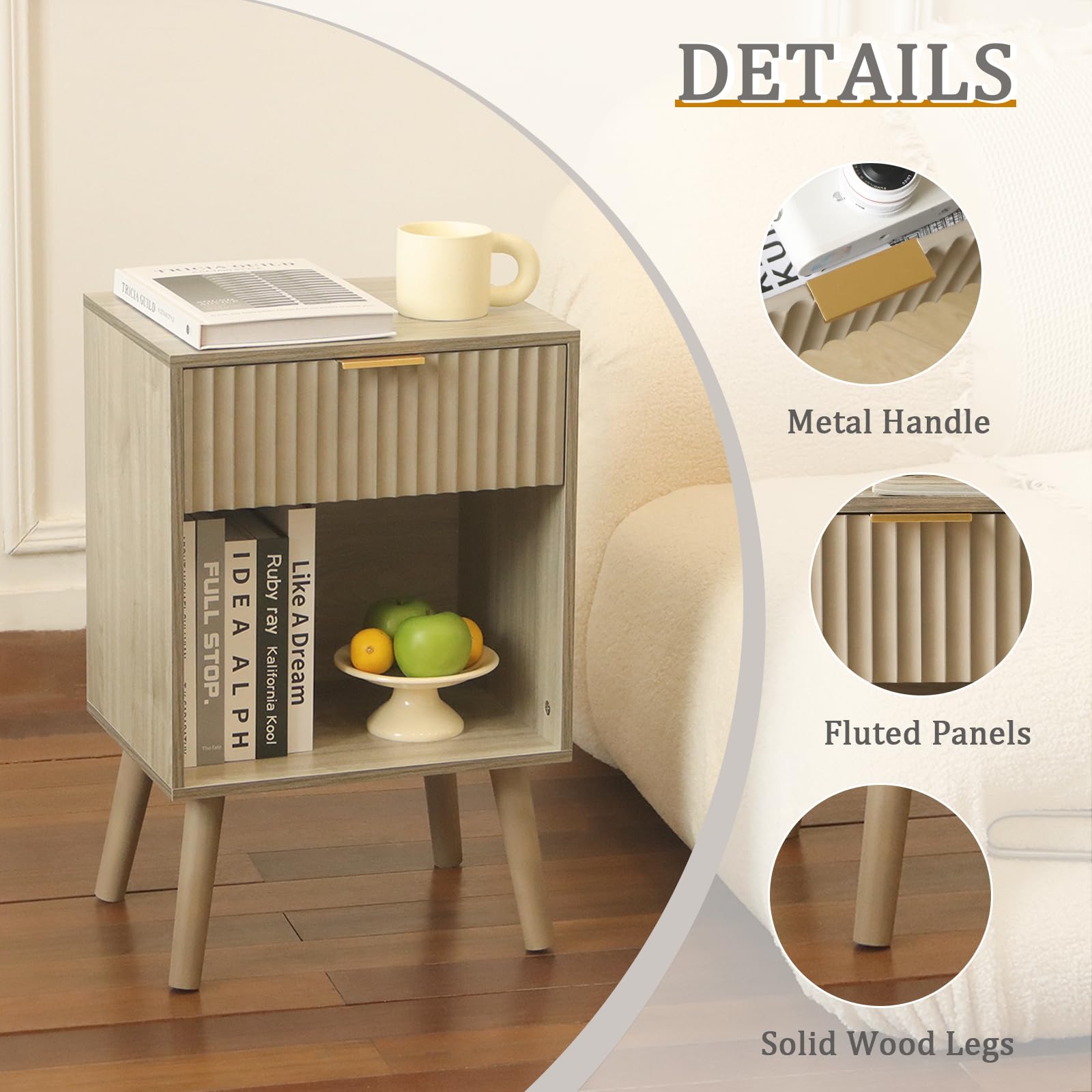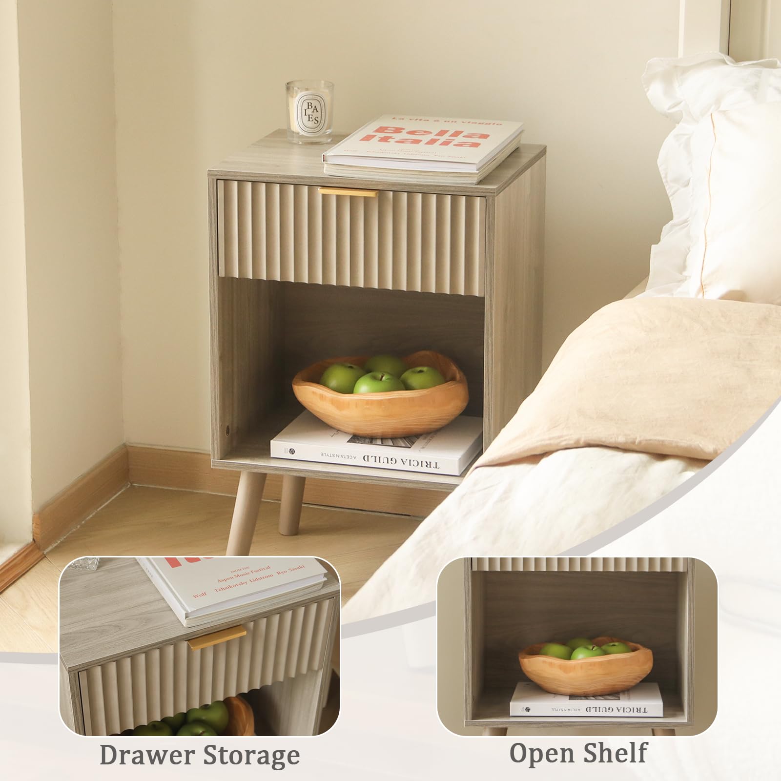 Mid Century Modern Nightstand, Wood Bedside Table with Drawer and Opening Storage